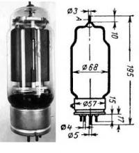 Генераторный пентод ГК-71 в стеклянном баллоне со специальным цоколем и естественным воздушным охлаждением.
